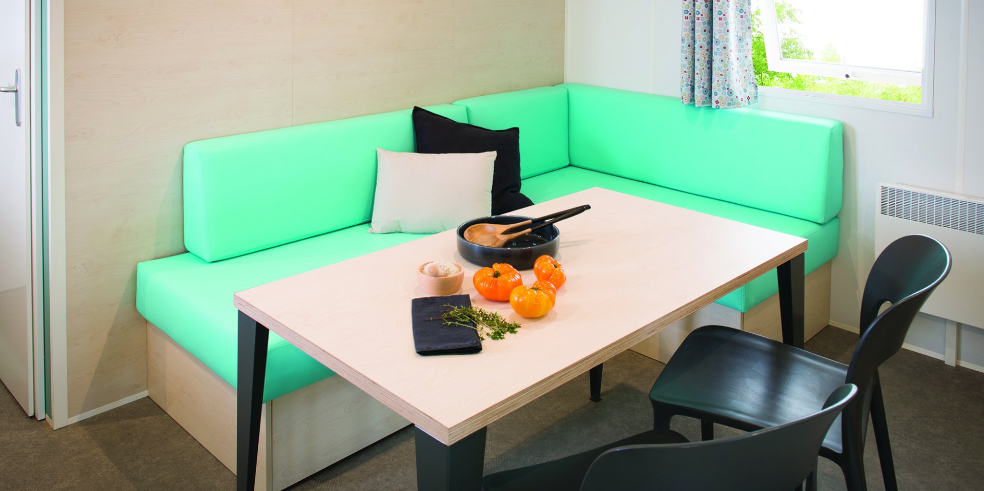 plaques à gaz, micro-ondes, réfrigérateur- congélateur, cafetière électrique, ustensiles et vaisselle pour 4 personnes, climatisation, TV.